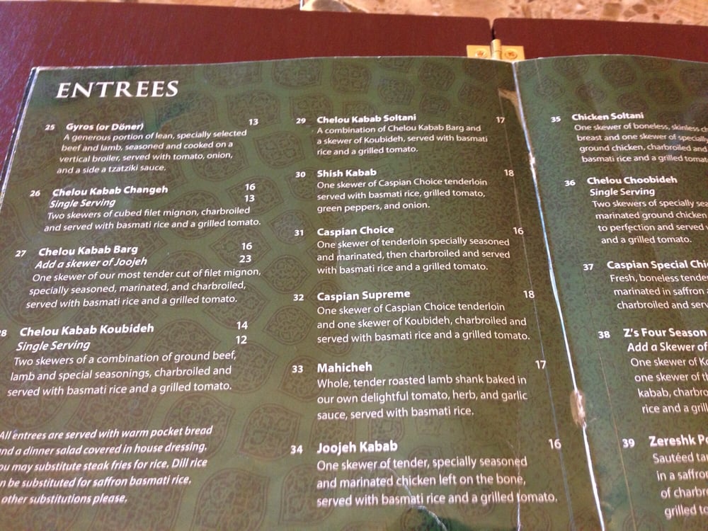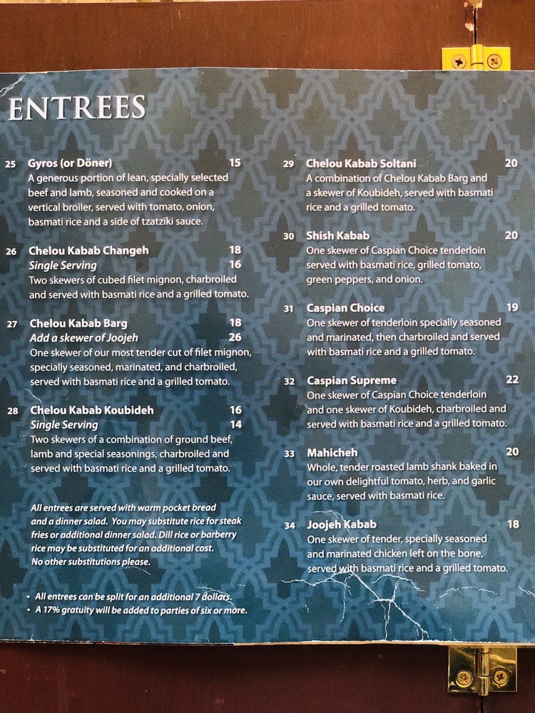 Welcome to Caspian Bistro and Gourmet Marketplace, a hidden gem nestled in Minneapolis that serves up authentic Persian delights. The menu features a delectable array of cold and warm appetizers, such as Mast O Khiyar and Pomegranate Wings, sure to tantalize your taste buds. For heartier options, savor their renowned entrees like the Chelou Kabab Soltani or the Koubideh Combo, each crafted with high-quality meats and rich flavors.